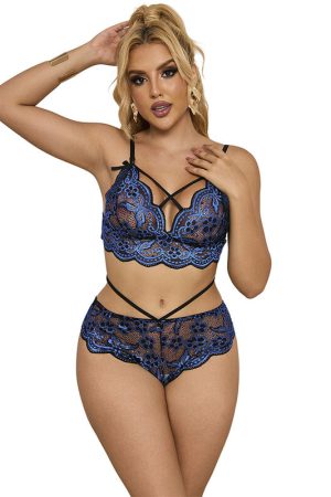 SUBBLIME – 954079 SUTIÃ + CALCINHA RENDA AZUL L/XL