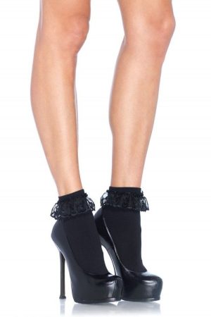 LEG AVENUE – MEIAS PRETAS COM BABADO DECORATIVO