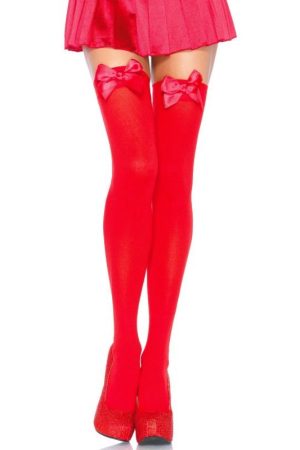 LEG AVENUE – COXAS EM NYLON COM LAO VERMELHO TAMANHO ÚNICO