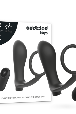 ADDICTED TOYS – ANEL DE PÊNIS COM CONTROLE REMOTO PLUG ANAL PRETO RECARREGVEL