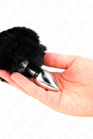 KINK – PLUG AÇO INOXIDÁVEL 7 x 3 CM COM CAUDA DE COELHO PRETA PELE FALSA 8 CM