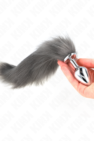 KINK – PLUG ANAL TAMANHO S 7 X 3 CM COM CAUDA SINTÉTICA 40 CM CINZA