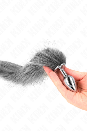KINK – PLUG ANAL TAMANHO L 10 X 4 CM COM CAUDA SINTÉTICA 40 CM CINZA