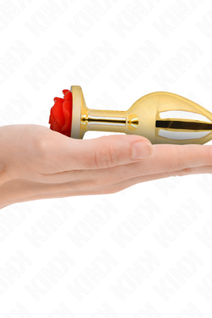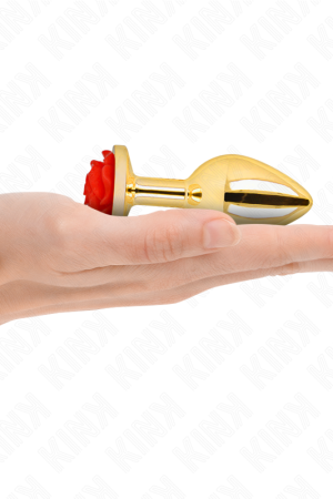 KINK – PLUG ANAL DE OURO ROSA COM ROSA VERMELHA M